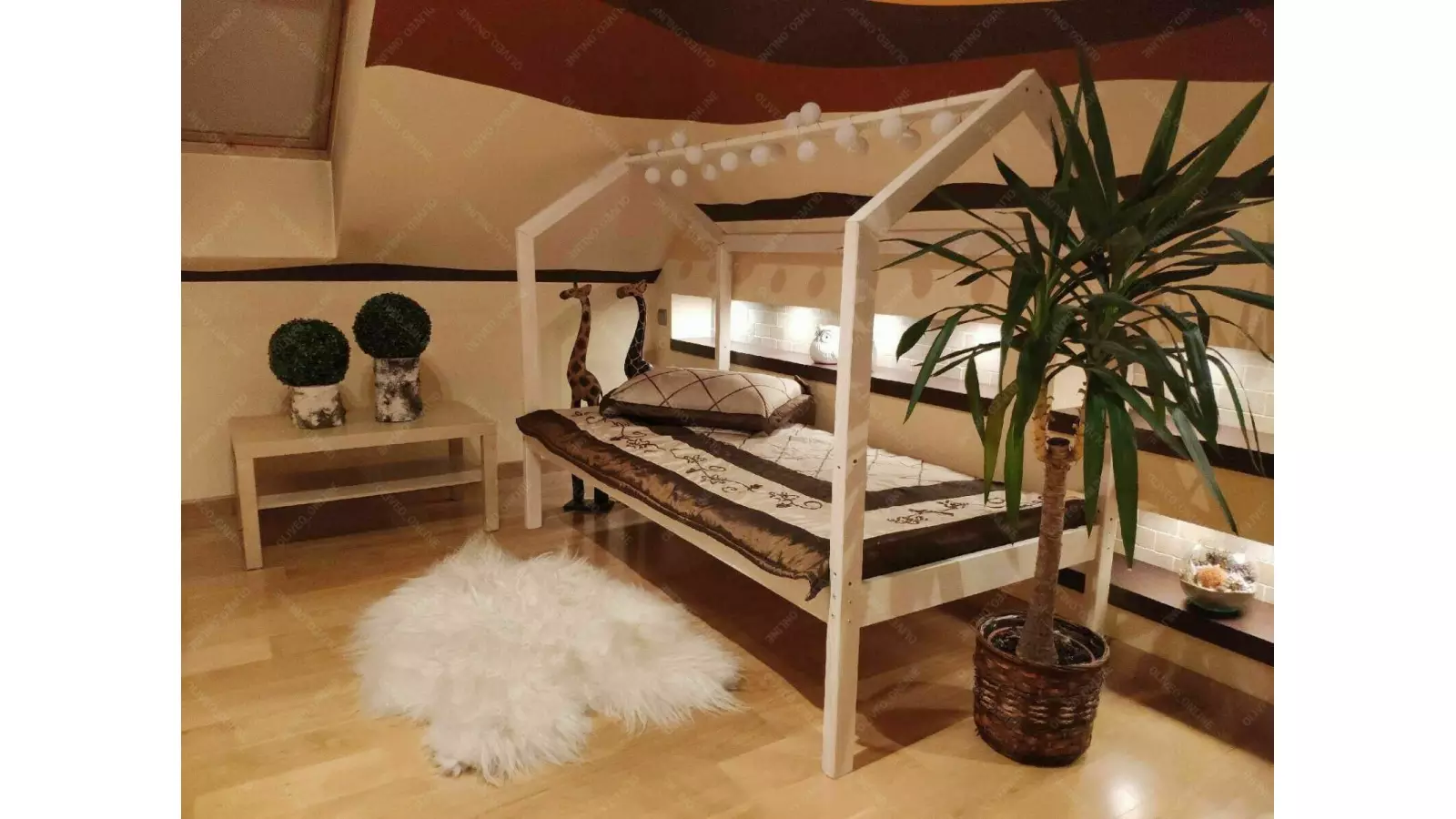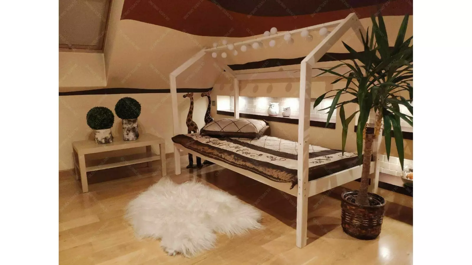 Wytrzymałe i eleganckie łóżko domek z nóżką o wysokości 37 cm jest meblem, który zachwyca swoim designem. Produkt wykonano z polskiego naturalnego drewna sosnowego. Oferowany wyrób zapewni zdrowy i spokojny sen każdemu dziecku, jak również może być wykorzystany do zabaw z rówieśnikami czy rodzeństwem.