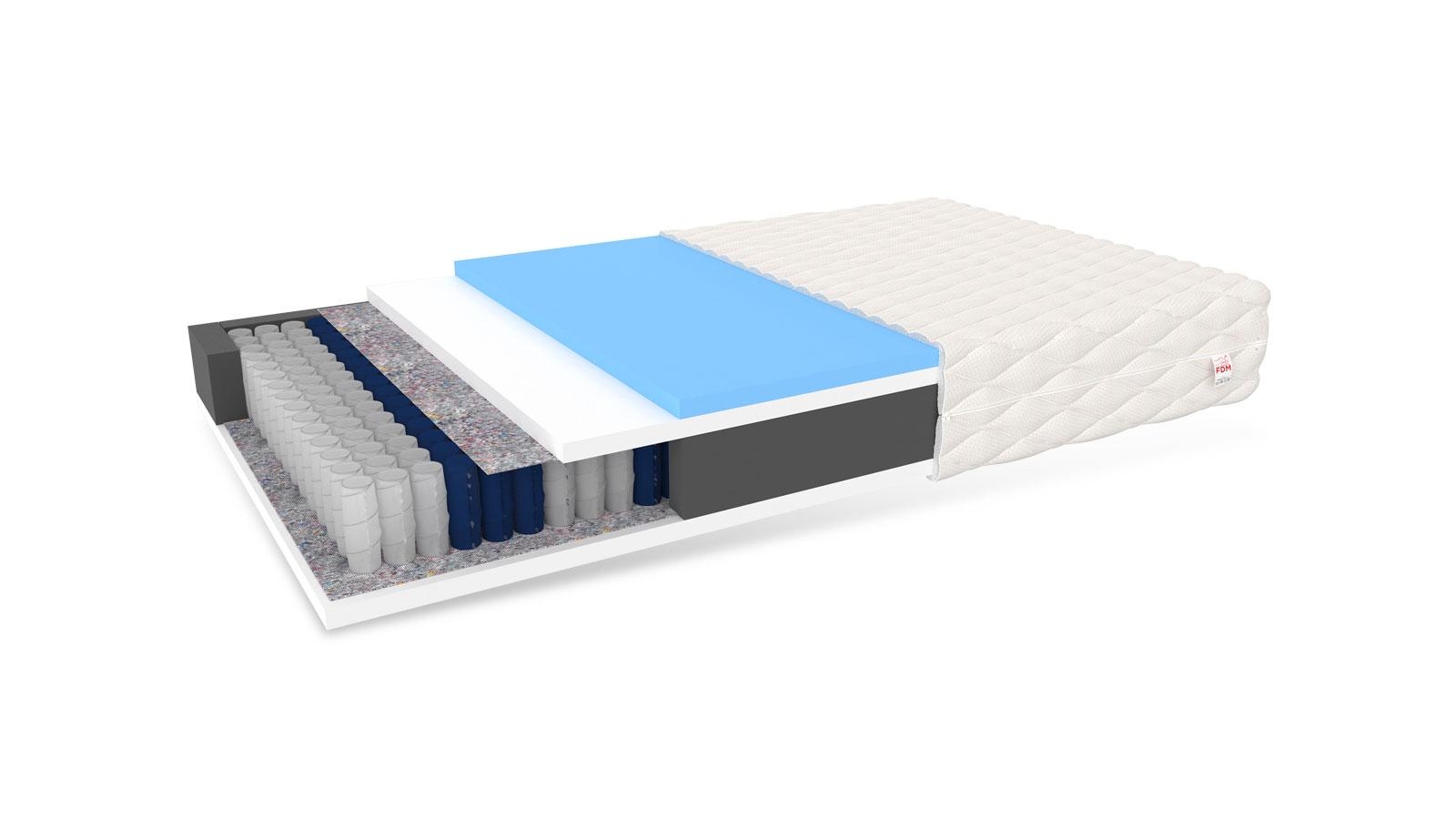 Rdzeń materaca ENNA stanowi formatka pocketowa (kieszonkowa). Sprężyny pocketowe zostały wykonane w technologii NanoHARD, podwójnie hartowany drut znacznie przedłuża ich żywotność. Dzięki zastosowaniu 7-stref o zróżnicowanej twardości materac zapewnia ergonomiczną pozycję ciała podczas wypoczynku. Niezależna praca sprężyn, eliminuje efekt wyginania się dużej powierzchni materaca przy nacisku na jego małą powierzchnię. Dzięki czemu wszelkiego rodzaju obracanie, czy wiercenie nie będzie odczuwalne dla drugiej osoby. Wkład kieszeniowy otacza pianka poliuretanowa T25, odporna na odkształcenia.Umieszczona z jednej strony materaca pianka wysokoelastyczna HR, dzięki doskonałej wentylacji, zapobiega rozwojowi pleśni i grzybów.Specyfikacja: twardość: H2 średnio miękki; H3 średnio twardy, grubość: 19 cm.Skład: przekładka tapicerska: 2 szt., Powierzchnia użytkowa: Dwustronne , Pianka poliuretanowa T25: 2 cm, Pokrowiec: 1 cm, Wysokość sprężyn: 12 cm, Pianka Poliuretanowa T25: 2 cm, Pianka wysokoelastyczna HR: 2 cm.