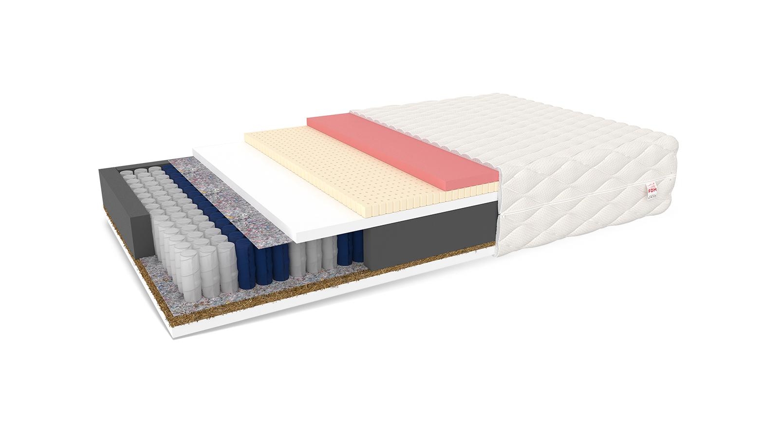 7-strefowy materac Genua to materac stworzony dla wymagających klientów. Dzięki zastosowaniu sprężyn kieszeniowych jest idealnym rozwiązaniem dla jednej, jak i dwóch osób. Sprężyny pocketowe zostały wykonane w technologii NanoHARD, podwójnie hartowany drut znacznie przedłuża ich żywotność. Dzięki zastosowaniu 7-stref o zróżnicowanej twardości materac zapewnia ergonomiczną pozycję ciała podczas wypoczynku. Niezależna praca sprężyn, eliminuje efekt wyginania się dużej powierzchni materaca przy nacisku na jego małą powierzchnię. Dzięki czemu wszelkiego rodzaju obracanie, czy wiercenie nie będzie odczuwalne dla drugiej osoby. Po jednej stronie użytkowej znajduje się warstwa kokosu (schowana pod pianka poliuretanową T25), która usztywnia powierzchnię materaca. Druga strona została wzbogacona o warstwę lateksu i pianki termoplastycznej VISCO. Takie połączenie daje gwarancję idealnego dopasowania do ciała oraz świetnej cyrkulacji powietrza.Specyfikacja: twardość: H2 średnio miękki; H4 twardy, grubość: 22 cm.Skład: Powierzchnia użytkowa: Dwustronne , Wkład kokosowy: 1 cm, Perforowany lateks: 2 cm, Pianka poliuretanowa T25: 2 cm, VISCO pianka termoplastyczna: 2 cm, Pokrowiec: 1 cm, Wysokość sprężyn: 12 cm, Pianka Poliuretanowa T25: 2 cm.